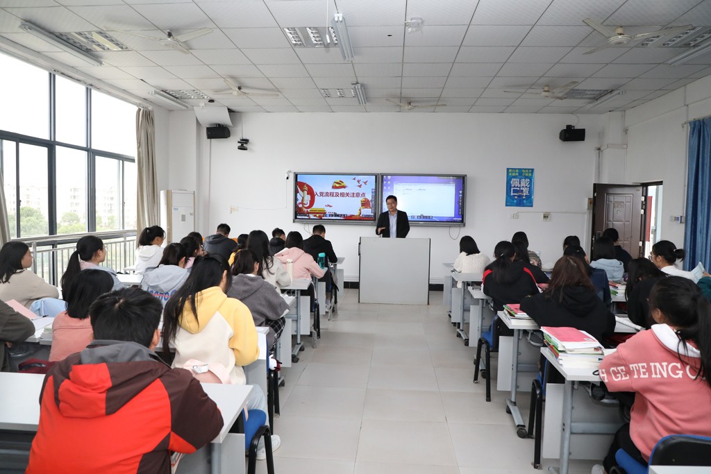 吴小平在班会上与同学们进行亲切交流,结合自身工作经历与同学们分享入党缘由,并对同学们提出三点希望:一是要“爱党、爱国、爱社会主义”,要牢记党的初心和使命,牢记党的性质和宗旨,走好新时代的长征路;二是要“走正道,做正直的人”,要努力学习,勤练技能,见贤思齐,不断提升自己的品德修养,做一个有价值的人;三是要“听党话、感党恩、跟党走”,努力学习,一心向党,时刻以党员的标准要求自己,积极向党组织靠拢。