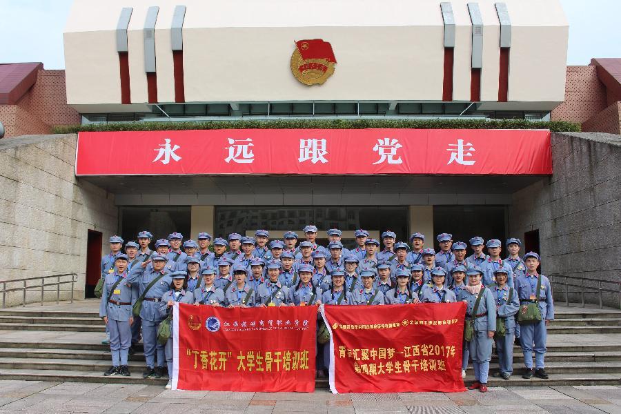 为进一步贯彻落实习近平总书记在全国高校思想政治工作会议上的重要讲话精神,提高大学生骨干的各项综合能力,坚定大学生骨干“高举团旗跟党走”。3月23日—25日,我校积极响应团省委号召,推选50名学生骨干参加“青春汇聚中国梦”——江西省2017年第四期大学生骨干培训班,在红色革命跟基地井冈山开展为期三天的红色集训。