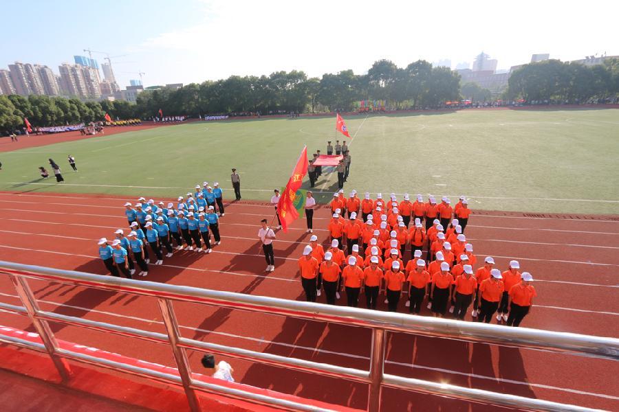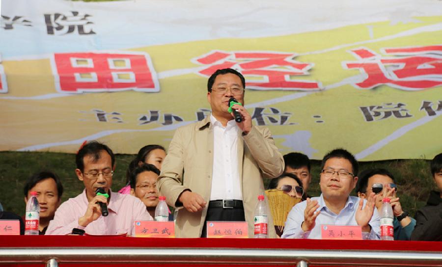 赵恒伯书记宣布学校第十五届田径运动会比赛正式开始。