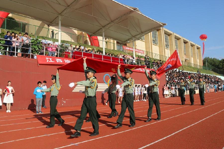 雄壮激昂的《运动员进行曲》中,步伐铿锵、英姿挺拔的护旗手将五星红旗护送入运动场,彩旗队、鲜花队的同学们迎着阳光,露出自信的微笑紧随其后。七个学院代表队以及裁判员代表队伴随着慷慨激昂的解说词,踏着整齐矫健的步伐,依次通过主席台展示各自的风采。