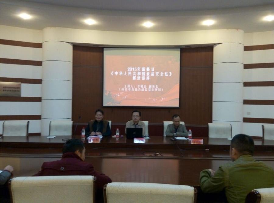 为进一步学习贯彻好新修订的《食品安全法》,10月30日,后勤管理处邀请南昌市食品化妆品监督所李敬山副所长来校作“2015年新修订《中华人民共和国食品安全法》解读”专题讲座。学校党委委员、校长助理肖长荣、后勤管理处有关同志、各食堂经营管理人员、风味档口经营户、校园从事食品生产流通的商户,以及校学生膳食管理委员会代表70余人参加了学习。
