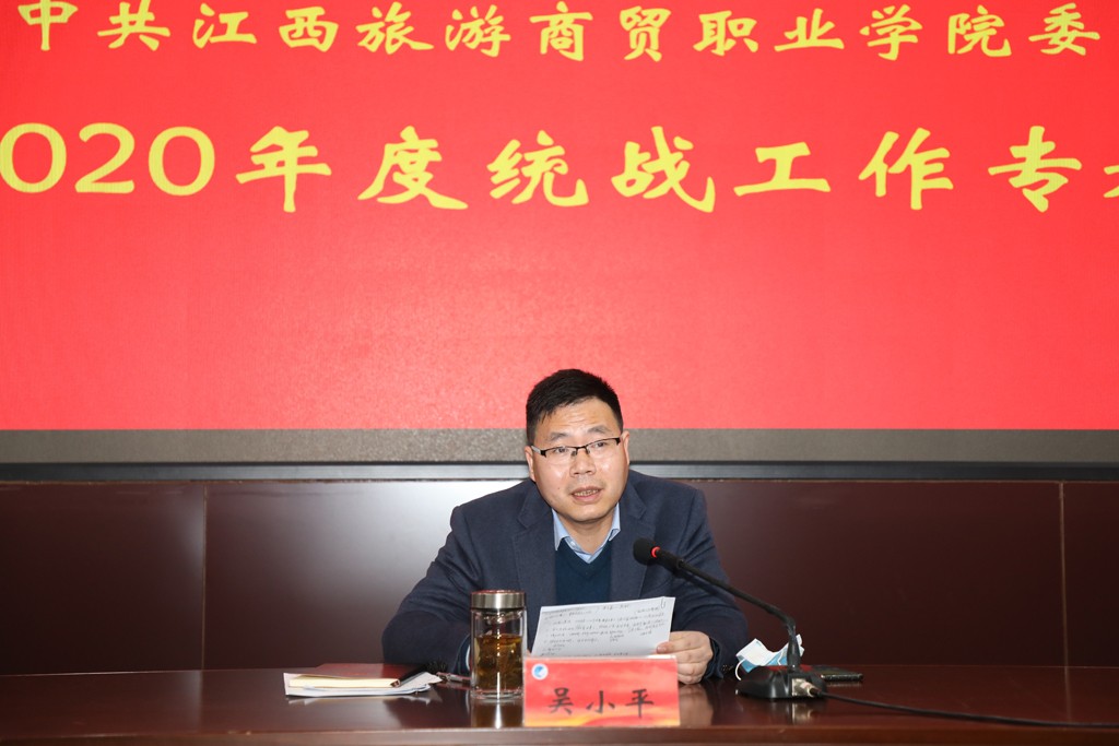为贯彻落实全国、全省统战部长会议精神,3月31日,学校在行政楼一楼会议室召开2020年度统战工作专题会。校党委书记吴小平,校党委委员樊盛春在会上讲话。校领导班子成员及全体中层干部参加了会议。会议由党委委员、副院长方卫武主持。
