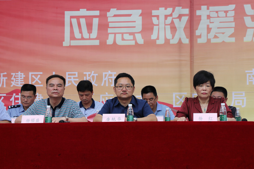 新建区政府常务副区长唐艳华,新建区政协副主席杨红,南昌燃气集团副总经理章伟强,校党委委员、副院长杨福盛,及新建区应急办、安监局、住建局、消防大队、交警大队,南昌燃气集团等9家单位约200人参加演练。