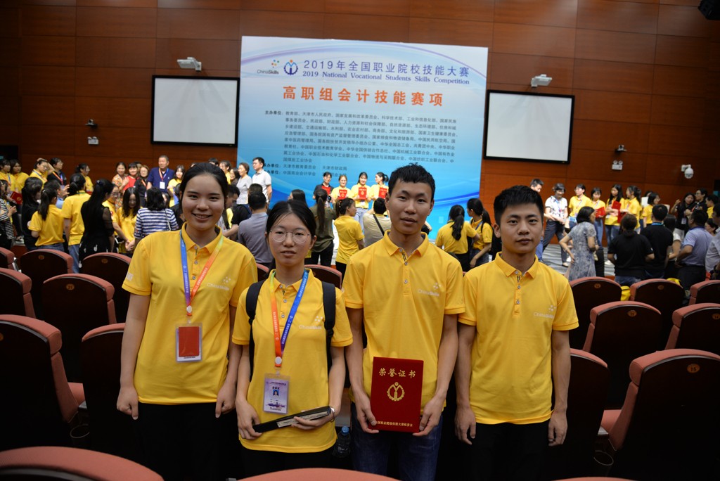 6月1日,由教育部、天津市人民政府、财政部等共同主办的2019年全国职业院校技能大赛高职组会计技能赛项在天津举行。我校由会计金融学院2016级会计2班史登媛、2017级会计5班刘海林、2017级会计7班刘自立、2017级财管1班杨彩欣四名参赛选手组成的代表队(指导老师:徐龙、潘细香、杨巧、赵璧佳、倪婷、曹力、沈雨迪)获得团体三等奖,其中史登媛同学在出纳岗位职业素养考核个人赛中获得满分。