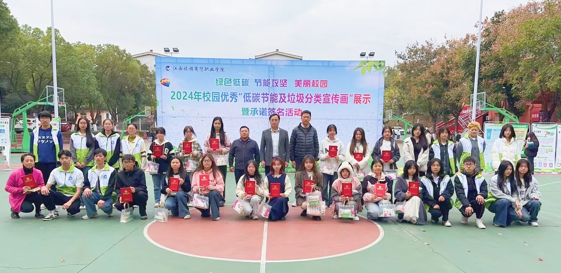 期间,学校开展了校园低碳节能及垃圾分类宣传画作品评选展示、低碳节能及垃圾分类承诺签名、节能知识展板、校园内横幅标语及线上媒体宣传等活动。