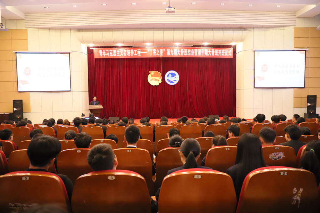 肖长荣代表学校党委对顺利结业的第九期大骨班的学员们表示祝贺,对第十期丁香之星大骨班的学员们提三点希望:一是希望深化理论学习,坚定理想信念;二是希望加强实践锻炼,增强干事本领;三是希望紧密联系同学,提高服务意识。希望同学们通过培训成长为坚定的青年马克思主义者,成为对党忠诚、信仰坚定、为民奉献、敢于担当,具有高度的理论自觉、鲜明的实践品格、奋进的创新精神的青年学生骨干,成长为又红又专、德才兼备、全面发展的新时代青年,并形成带动效应,从而进一步坚定我校青年学生跟党走中国特色社会主义道路的理想信念。