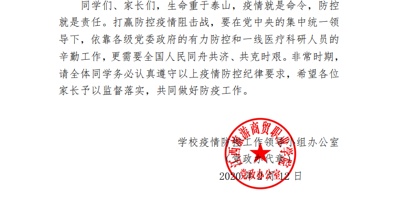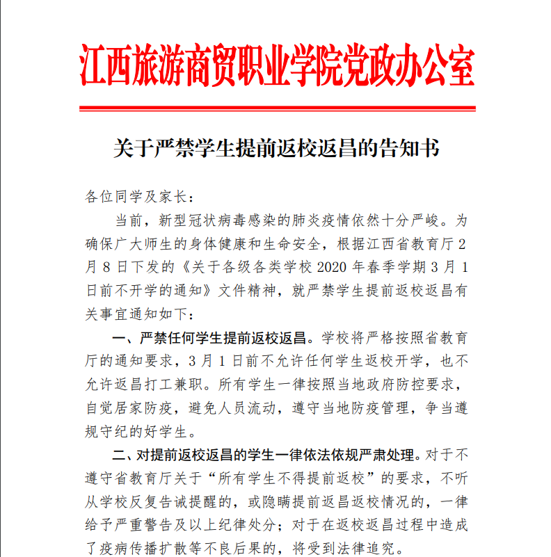 关于严禁学生提前返校返昌的告知书