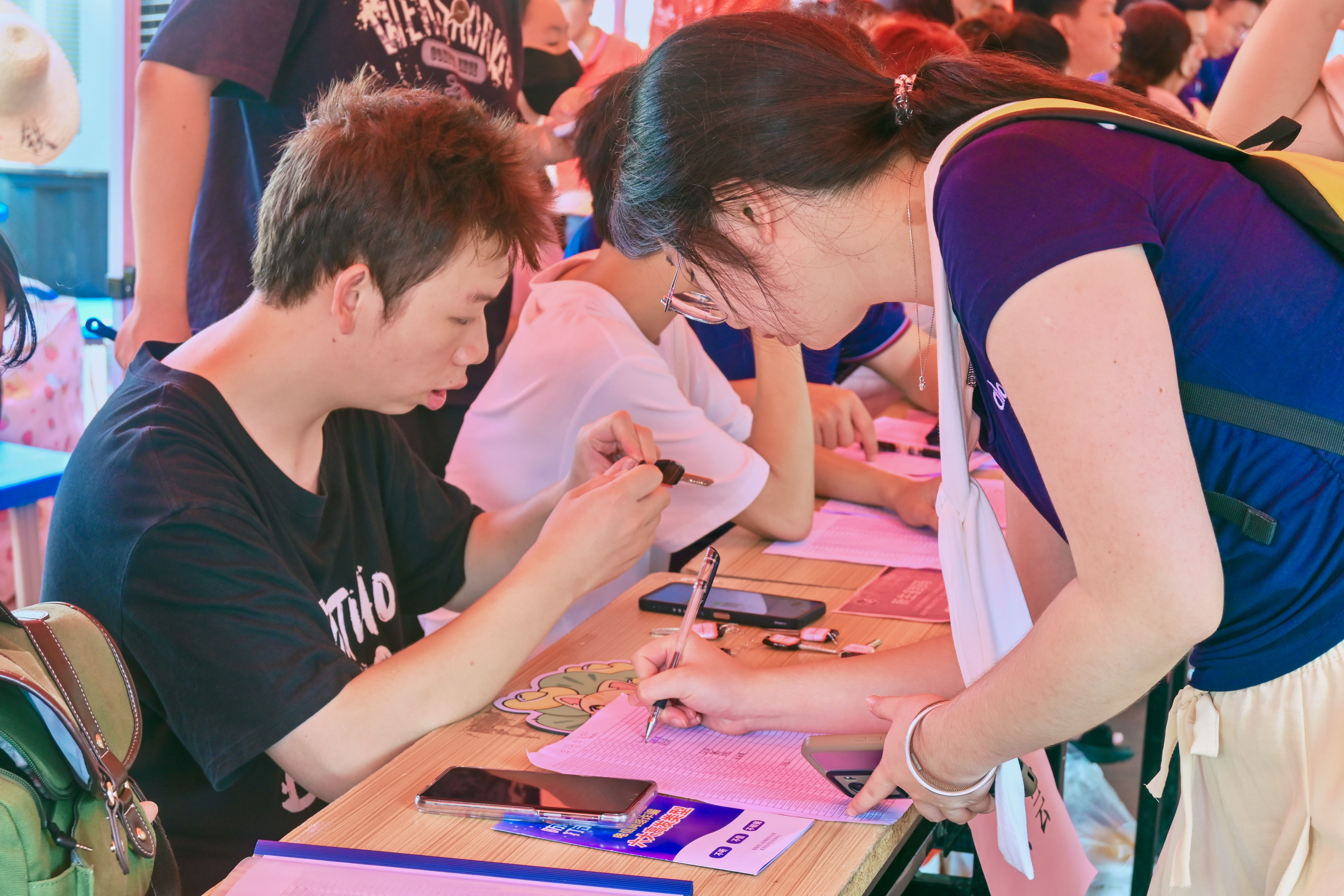 志愿者们穿梭在人群中