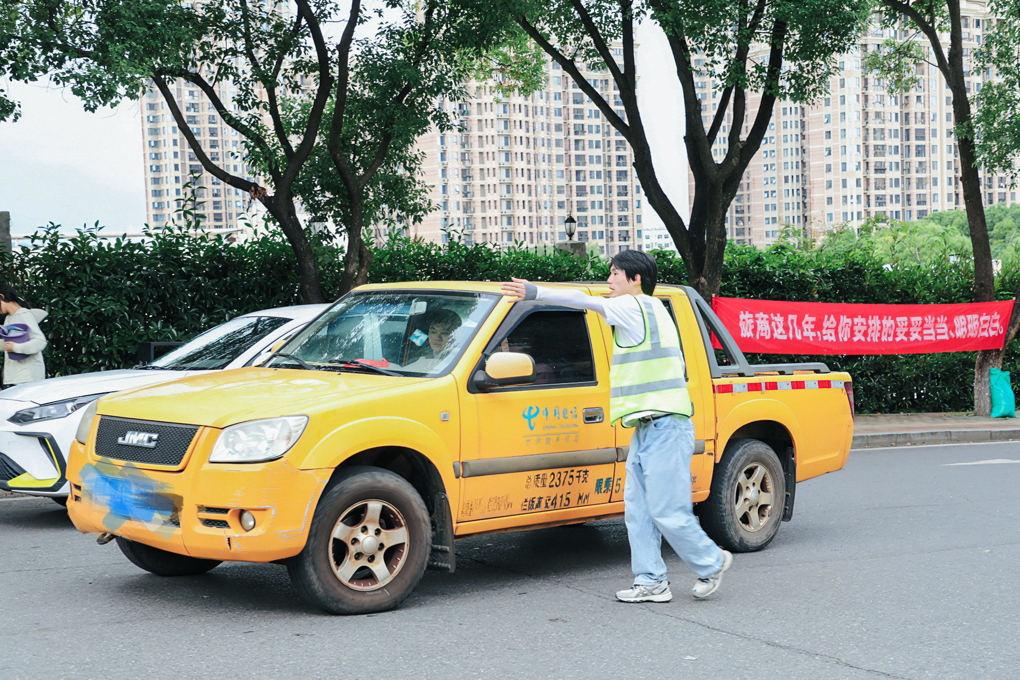 清晨,接站志愿者们出发
