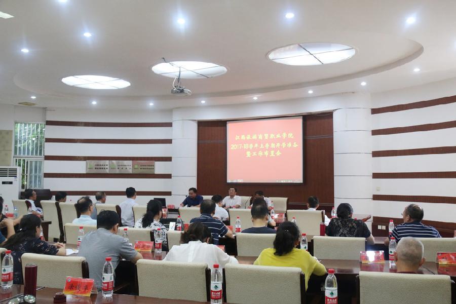 会议伊始,校领导班子成员依次就分管工作在新学期的工作安排作了介绍。这些工作包括:党建、思想政治、宣传、财务预决算、技校、继续教育、后勤、智慧校园建设、教学诊改、国家优质高职创建、创新创业教育、纪检、校园基建、环境卫生、教育旅游示范区建设、工会、招生、迎新接待、新生军训、入学教育、安全保卫、党员管理、干部队伍建设等。