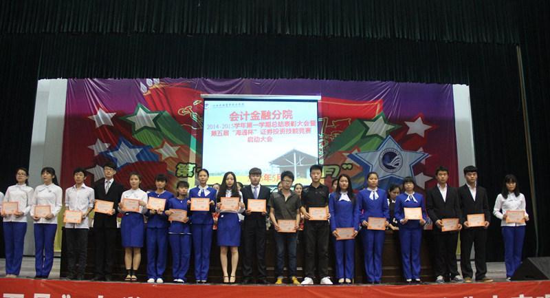 5月14日下午,会计金融分院在文体中心大礼堂举行了上学期学生技能竞赛总结表彰暨第五届“海通杯”证券投资和第十二届技能之星竞赛大会启动仪式。