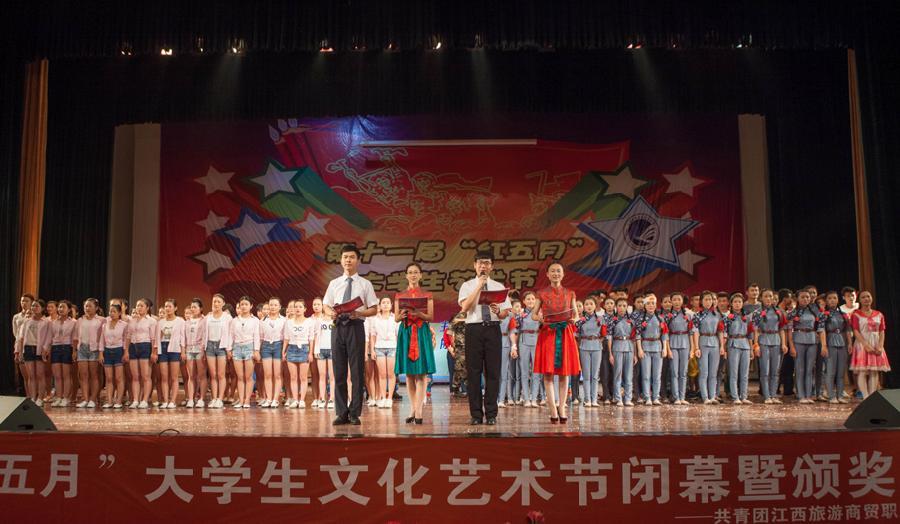 6月10日晚,江西旅游商贸职业学院第十一届“红五月”大学生社团文化艺术节闭幕式暨颁奖典礼在文体中心大礼堂举行。校领导赵恒伯、杨福盛、范秀仁、肖长荣、张甫旺等出席,并为本次红五月活动的先进个人及集体进行了颁奖。