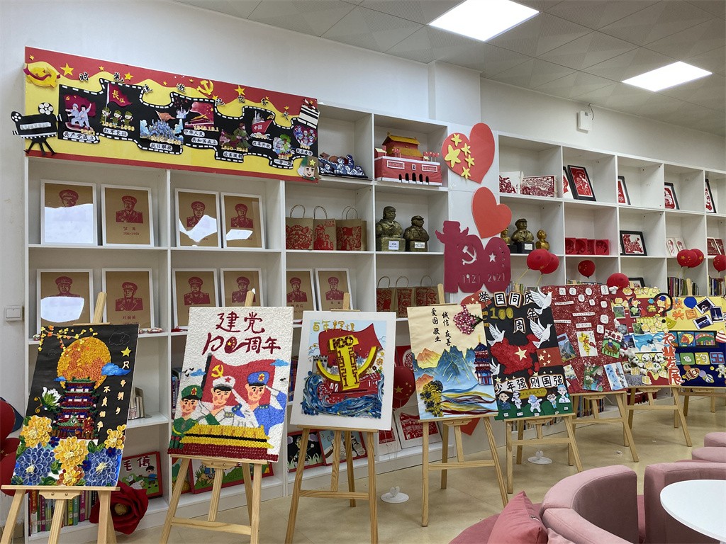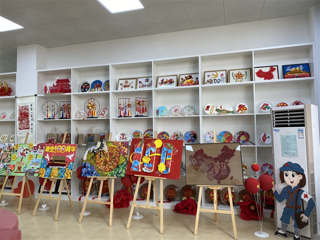 活动评委会遴选出100多件优秀手工作品在图书馆学前教育专业阅览室进行展览。本次展览汇聚了国际商务学院学前教育专业学生近一个月来的精美手工制作作品,这些美工艺术作品主题鲜明,风格独特,涵盖剪纸、刺绣、衍纸、泥塑、水彩等多种类型,集中体现了传承红色文化、讴歌百年辉煌的思想内涵。一幅幅精美的工艺作品再现了中国共产党艰苦卓绝的奋斗历程,歌颂了中国共产党的丰功伟绩和伟大精神,高度赞扬了中国共产党为中国人民谋幸福、为中华民族谋复兴的初心和使命,生动展现了中国共产党波澜壮阔的百年历史画卷。
