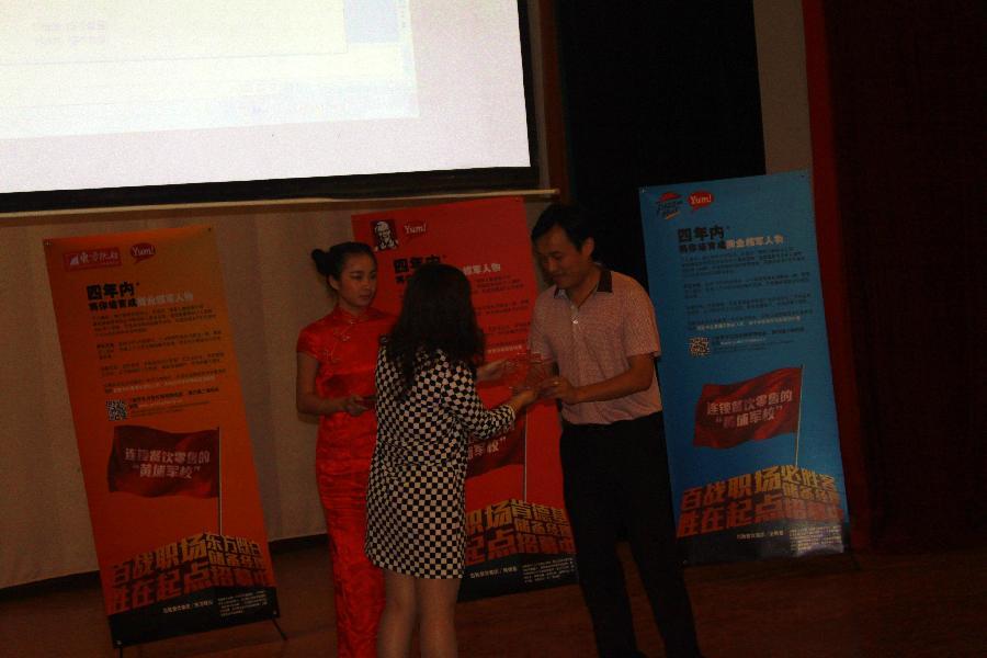 4月29日下午,经济管理分院与百胜集团南昌肯德基有限公司在图书馆学术报告厅举办了2013级连锁经营管理专业校企合作顶岗实习总结表彰大会。百胜集团运营经理姚娟等企业代表参加了会议。