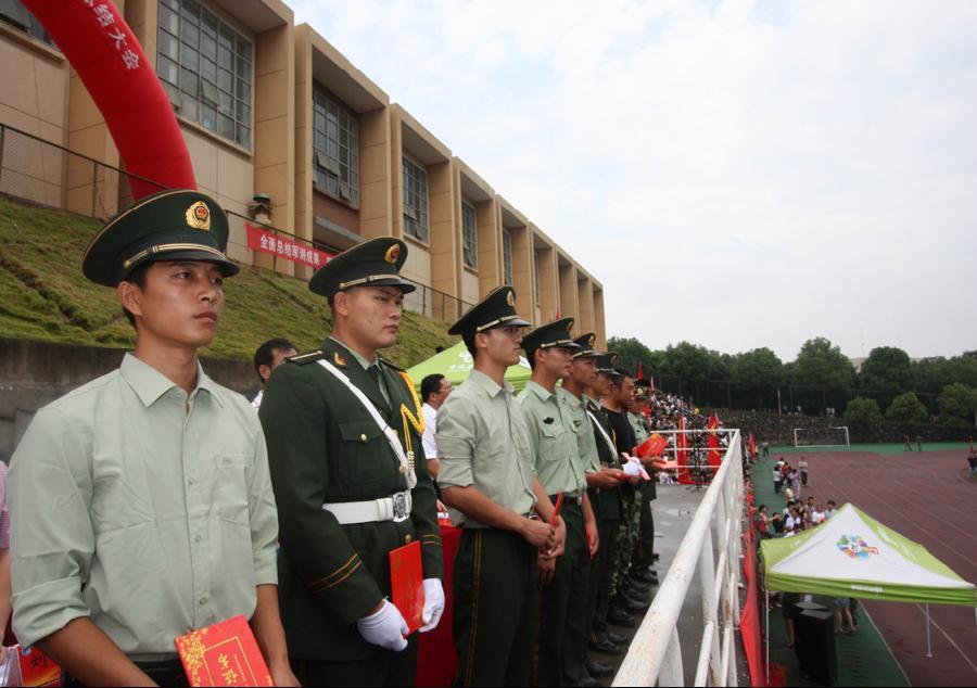 军训会操总结会上,对在军训过程中涌现出来的优秀教官、优秀指导员、优秀学员进行了表彰。各分院会操表演方阵队迈着矫健的步伐,喊着响亮的口号,以昂扬的精神面貌接受了省社领导及学校师生的检阅。军训教官以一套高难度的军体拳表演获得师生的阵阵掌声。(宣传部供稿)