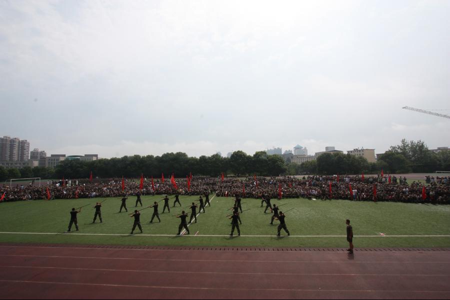 学校举行2014年新生开学典礼暨军训会操总结大会