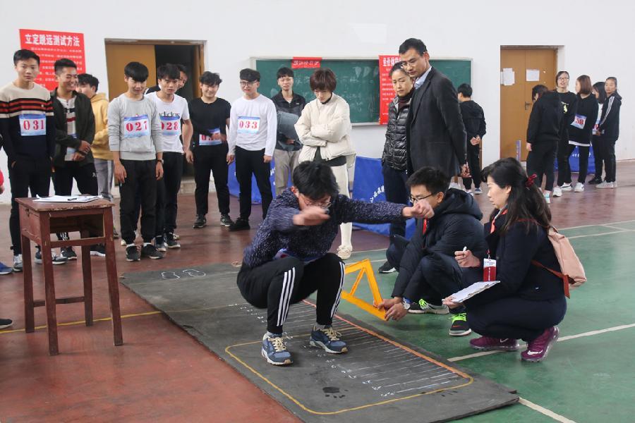 吴小平校长等来到体侧现场,向专家组的到来表示欢迎,并介绍了学校开展群众性体育和专业体育教育的主要做法和取得的主要成绩。同时看望慰问了参加本次体测工作的师生。