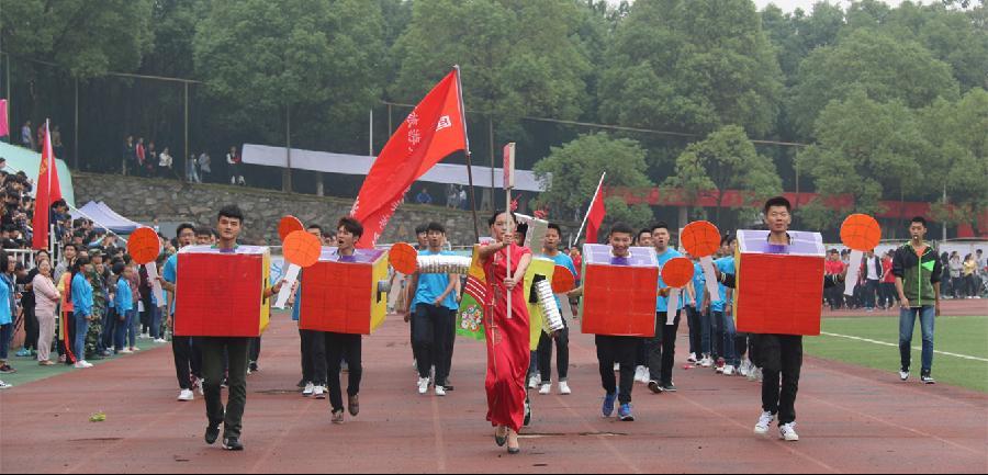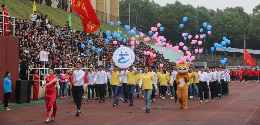 国旗护卫队的庄重和高大上,令现场观众肃然起敬。国际商务学院手工制作的机器人、手绘的校运会会标体现学前教育专业学生的多才多艺。机电学院工程造价专业的工程测量仪器、电子专业用发光二极管制作的运动员跑步造型体现工科男的活泼。经管学院则手举“经韬纬略、赢在天下,经济管理、超越自我”的口号及奥运五环会标,体现他们誓在本届运动会上发扬更高、高快、更强的运动精神,超越自己。会计学院学生则手举传统的会计工具算盘体现他们将是未来会计岗位上的向日葵。旅游学院高铁乘务专业学生手拉行李箱尽显他们的大长腿及英姿帅气。艺术传媒与计算机学院无论是手举的学院会标还是可爱的动漫造型及途中放飞气球的编排都体现他们的创作创新思想。