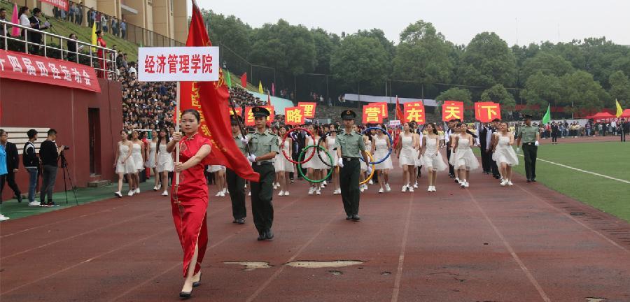 10月26日上午,在同学们高昂的热情和响亮的欢呼声中,我校第十四届田径运动会在田径场盛装开幕。校领导赵恒伯、方卫武、杨福盛、范秀仁、邹文虎、文玉菊、张甫旺、肖长荣出席开幕式。学校校运会组委会全体委员、各部门主要负责人、各学院党总支书记及全体运动员、裁判员,各学院教职工、学生代表等数千人参加开幕式。开幕式由党委委员、副校长方卫武主持。