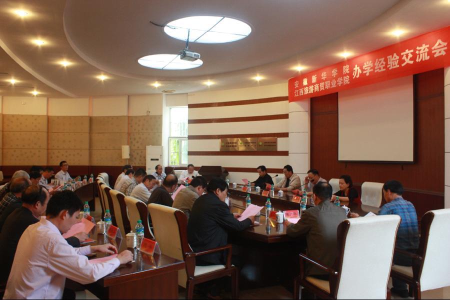 在行政楼一楼会议室召开了两校办学经验交流会。会上,赵恒伯书记作了讲话,代表学校对石秀和一行来校考察交流表示欢迎,并向客人介绍了学校的办学历程、院系概况及专业设置等基本情况。学校组建以来,历经“规模发展求生存”“改革创新促发展”“内涵建设树品牌”三个阶段,取得了省部共建优秀院校、省级示范院校、首批应用技术型本科联合培养试点院校等办学成就;今后,学校将进一步深挖旅游商贸特色,突出内涵建设,积极创建江西教育旅游示范区,争取创办江西旅游学院。