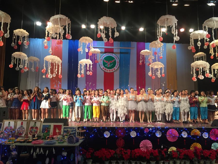 梦幻风格的舞台设计由手工专业老师指导学生共同完成,展示了师生们充分的想象力和深厚的专业功底。汇报演出在充满活力的开场舞《La La La》中拉开了序幕,一曲名为《山楂树》的大合唱,让现场观众想起了昔日的校园时光;一曲钢琴弹唱《送别》,让观众体会到了孩子们对未来的向往以及离别的忧伤;而情景歌舞剧《淘气包马小跳》则充满了童趣,随后青春活力的舞蹈《shake it 》则让观众热血澎湃,一场特别的纸艺时装秀更是惊艳全场,同时也把演出推向了高潮,最后,演出在歌曲串烧《彩虹的约定》中圆满结束。