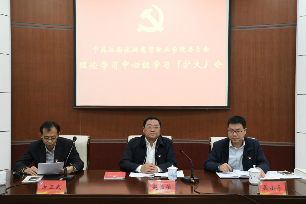 就持之以恒,加强政治理论学习。赵恒伯提出两点要求:一要精心组织开展十九大精神学习活动,掀起学习新高潮。要对照学校《学习贯彻党的十九大精神的实施方案》要求,自查是否部署好学习宣传贯彻工作,要做到有计划、有步骤,在全校形成学习宣传贯彻党的十九大精神的浓厚氛围,确保十九大精神的学习宣传贯彻工作深入扎实开展,取得实效。二要坚定“四个自信”,深入学习习近平新时代中国特色社会主义思想。要持续深入认真学习《习近平谈治国理政》《习近平新时代中国特色社会主义思想三十讲》《党的十九大报告学习辅导百问》等重要读物,自觉以党的创新理论武装头脑,不断从中汲取科学智慧和理论力量,指导实践、推动工作,紧紧围绕新时代党和国家的主要任务,为江西加快发展提供更有力的人才支撑和智力支持,办好中国特色社会主义高职学院。