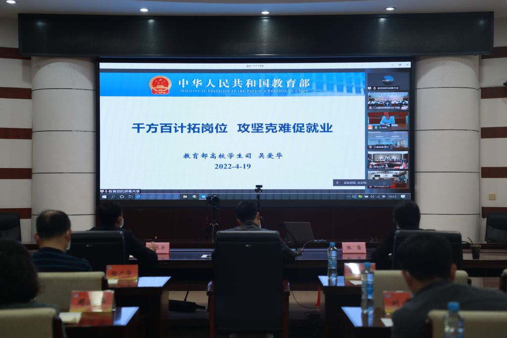 4月19日,教育部召开2022届全国普通高校毕业生就业工作第三次调度视频会,教育部学生司副司长吴爱华、教育部学生服务与素质发展中心副主任宁小华出席会议并讲话。我校与华中科技大学、青岛大学及重庆市教委、云南省教育厅分别作典型发言。