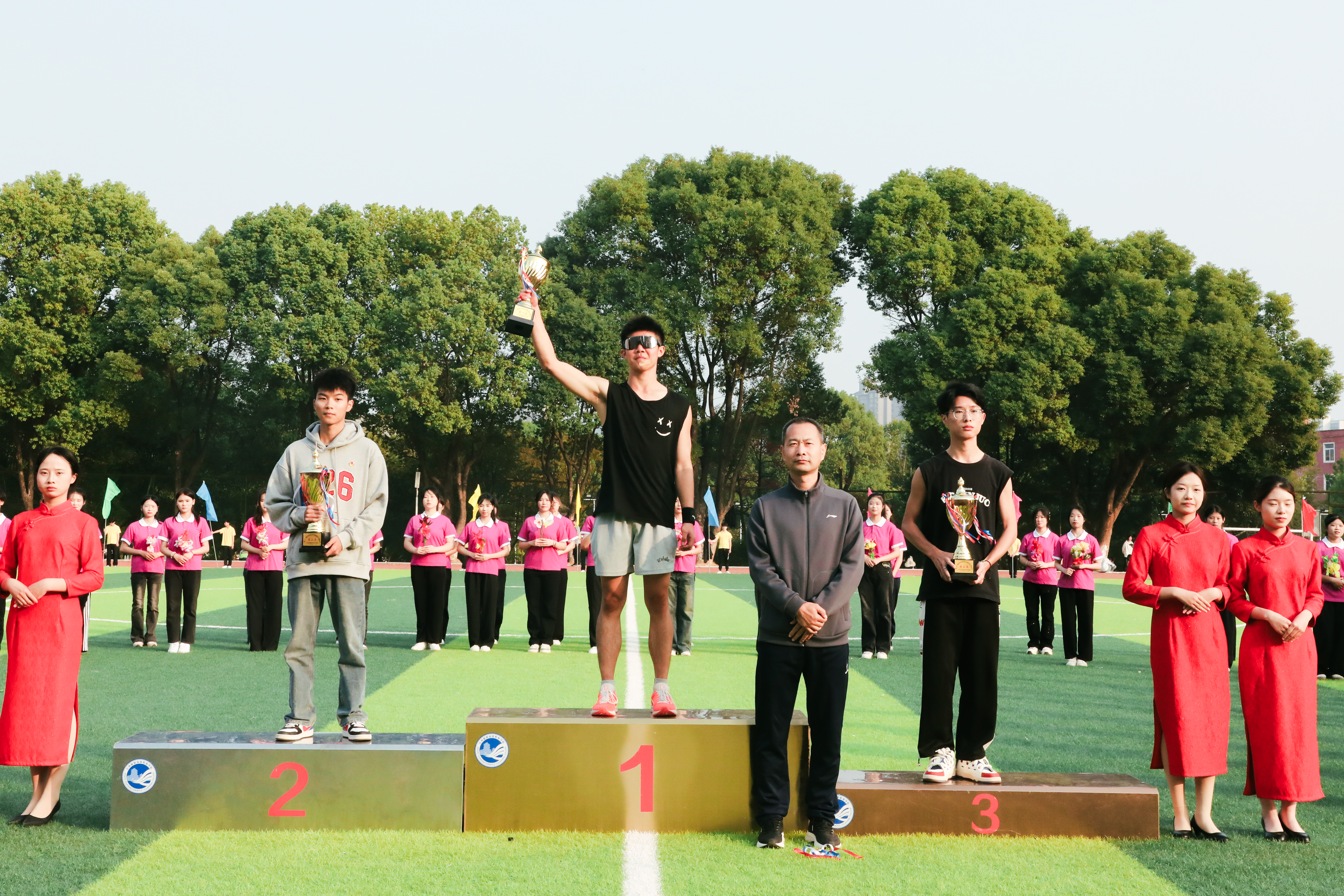 据悉,本届校运会共有703名师生运动员参赛,471人次获奖,先后有18位运动员刷新了6项校运会纪录。在学生普通组中,机建学院郭其全同学以4分35秒88的成绩刷新男子1500米记录,经管学院叶宏鑫同学以17分38秒30的成绩刷新男子5000米记录。在学生体育组中,24社体2班以3分43秒65的成绩刷新男子4*400米记录,23社体2班以4分25秒53的成绩刷新女子4*400米记录,23社体3班和23社体4班分别以45秒95和45秒97的成绩共同刷新男子4*100米记录。