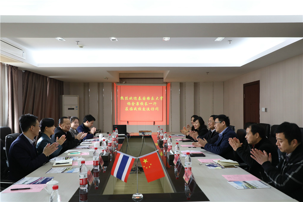 泰国格乐大学博士、教育管理硕博导师徐萍,事务部主任魏广冰,我校教务处、国际商务学院、人事处、合作交流处相关负责同志陪同交流考察。(宣传部供稿)