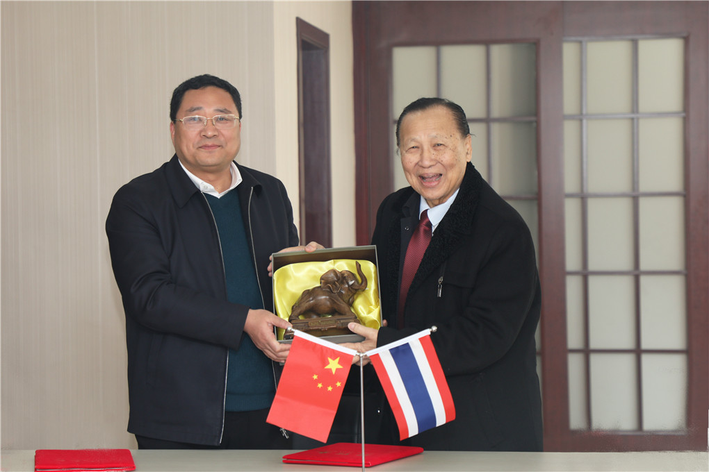 赵恒伯与杨金泉互赠礼物。赵恒伯表示,“一带一路”倡议得到全球众多国家的积极参与,国际教育也迎来新的发展契机,国际化合作交流成为新常态,学校积极响应“一带一路”倡议,结合特色专业与泰国格乐大学合作办学,着力培养具有国际视野的高素质人才。祝愿双方在国际教育交流中达成进一步共识。
