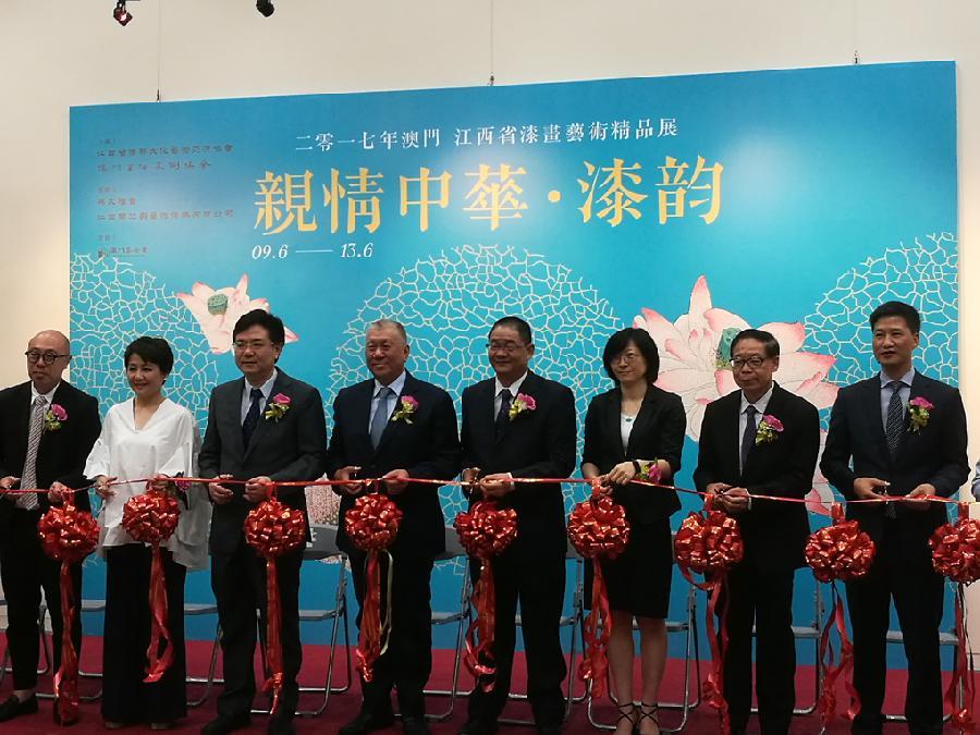 6月9日,由中国侨联和江西省侨联主办,澳门书法篆刻家协会承办的“亲情中华·漆韵”2017澳门·江西省漆画艺术精品展在澳门教科文中心展厅开幕。全国政协副主席何厚铧,澳门中联办副主任薛晓峰,澳门立法议员、江西省政协常委、江西省侨联副主席梁安琪,澳门基金会行政委员会主席吴志良等出席开幕式并剪彩。