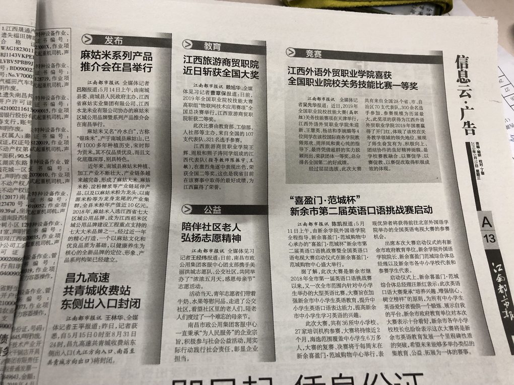 11、江南都市报:江西旅游商贸职业学院近日斩获全国大奖