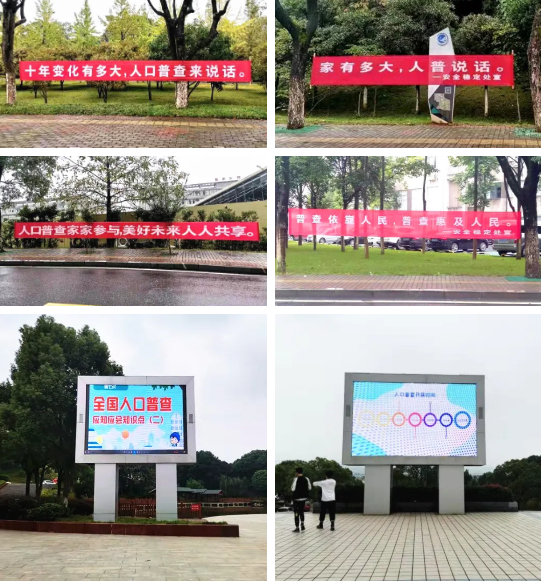 我校18000余名在住在户人口,既要纸质摸底,又要网上登记,任务十分艰巨。为了顺利完成普查工作,学校积极响应,主动出击,在主要道路悬挂宣传横幅,张贴宣传海报,利用校园内各处户外LED电子屏、新媒体以及学校官方网站等各种途径大力宣传人口普查工作,引导师生员工及家属积极支持、依法配合普查工作。