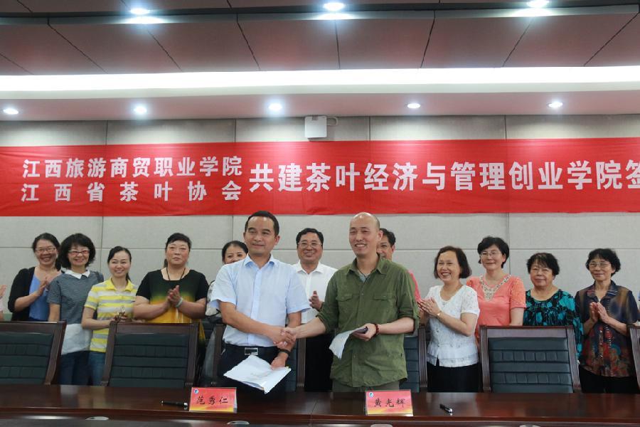 参加签约仪式的还要省旅游协会秘书长、江西旅游职教集团理事长万恺,省茶叶协会常务副会长樊秋萍、张卫华,副会长程叶红,副秘书长王芩,校长助理文玉菊及经济管理学院有关同志。