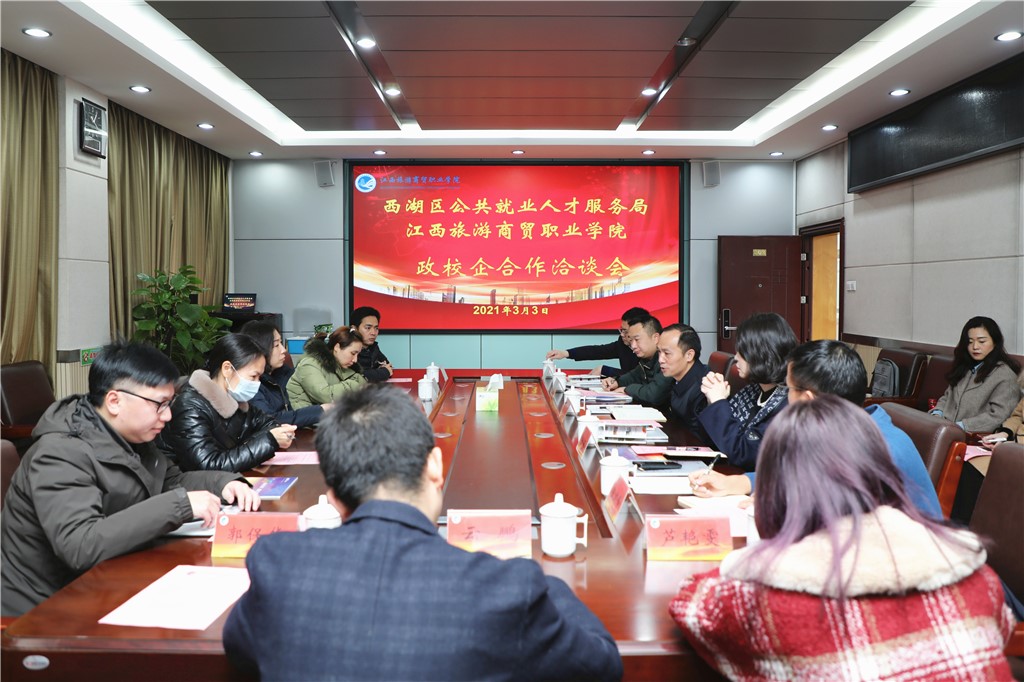 3月3日上午,西湖区公共就业人才服务局局长万颖带队来我校考察交流、洽谈合作。党委委员、副院长肖长荣,学校产教融合处、旅游学院负责同志及相关工作人员参加洽谈。
