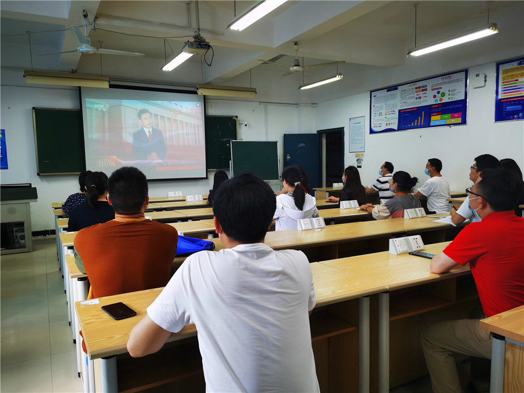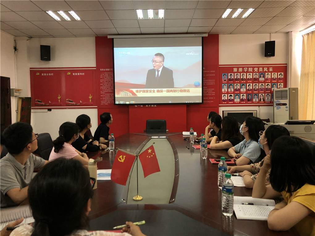 旅游学院青年党员教师邓小娇:下午旅游学院教工支部全体党员教师在办公室或家中观看十三届全国人大三次会议闭幕会直播。在这次特殊背景下召开的全国两会上,习近平总书记一句句坚持“人民至上”“生命至上”“紧紧依靠人民、不断造福人民、牢牢植根人民。”“社会主义道路上一个也不能少,全面小康大家一起走!”的话语暖人心扉、贴近民心。每一位党员教师都深切地感受到习近平总书记的人民情怀。