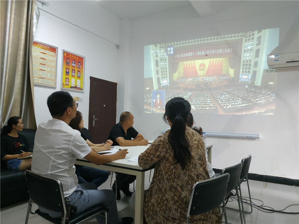 5月28日下午三时,第十三届全国人大第三次会议闭幕式在人民大会堂举行。在家校领导吴小平、杨福盛、刘中平、文玉菊、张甫旺、肖长荣在行政楼三楼会议室集中收看大会闭幕式及李克强总理答中外记者问并热烈讨论。