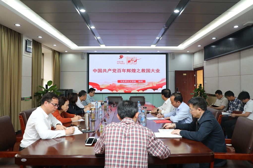 会上,马克思主义学院徐帅老师作新民主主义革命史的专题辅导,他按照“中国共产党创立期间”、“大革命时期”、“土地革命时期”、“抗日战争时期”、“全国解放战争时期”五个阶段,围绕“中国共产党在新民主主义革命时期完成救国大业”这一历史大事讲述了中国共产党这一路走来的筚路蓝缕。