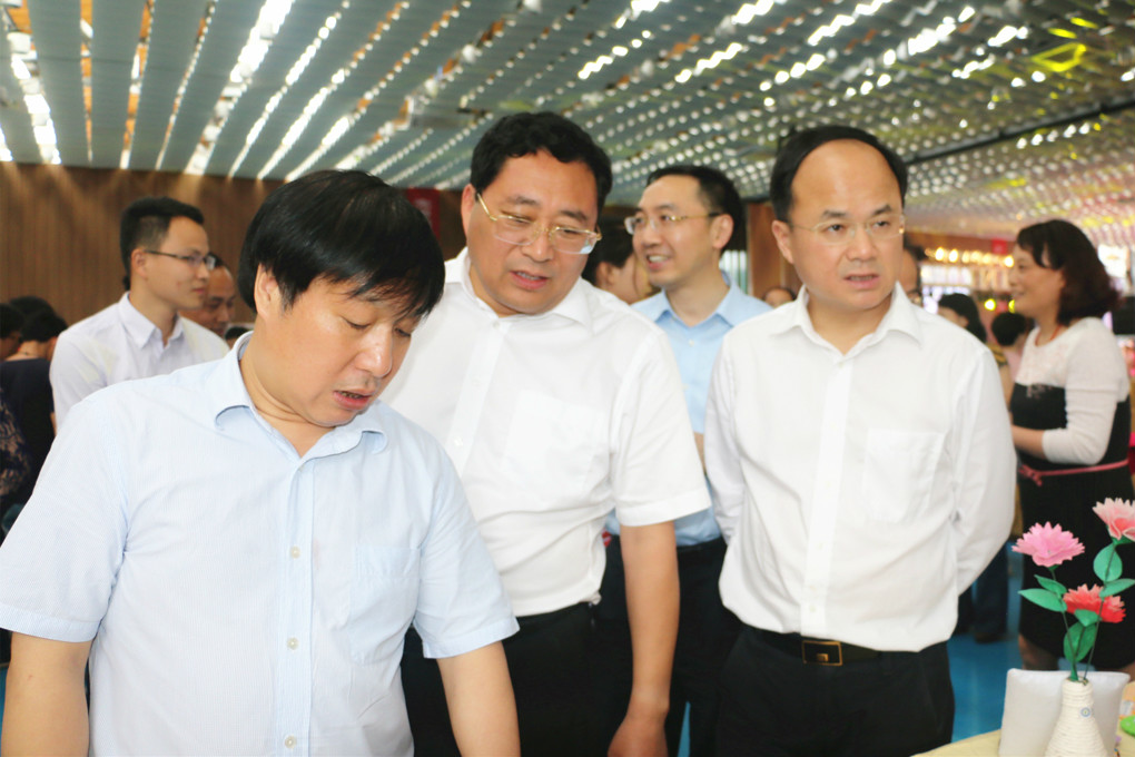 5月6日上午,2018年江西省职业教育活动周启动仪式在我校会展实训中心举行。启动仪式结束后,省政府副省长孙菊生、省教育厅厅长叶仁荪、省委宣传部副部长黎隆武、省委统战部副部长高鹰群、省人社厅副巡视员刘克平、省工信委副主任刘煜、省农业厅副厅长唐安来、省总工会副主席揭安全、团省委副书记伍复康、省教育厅副厅长杨慧文、省供销合作社副主任欧阳太来等领导和与会代表在学院党委书记赵恒伯的陪同下参观了我校职业技能展示和实训基地。