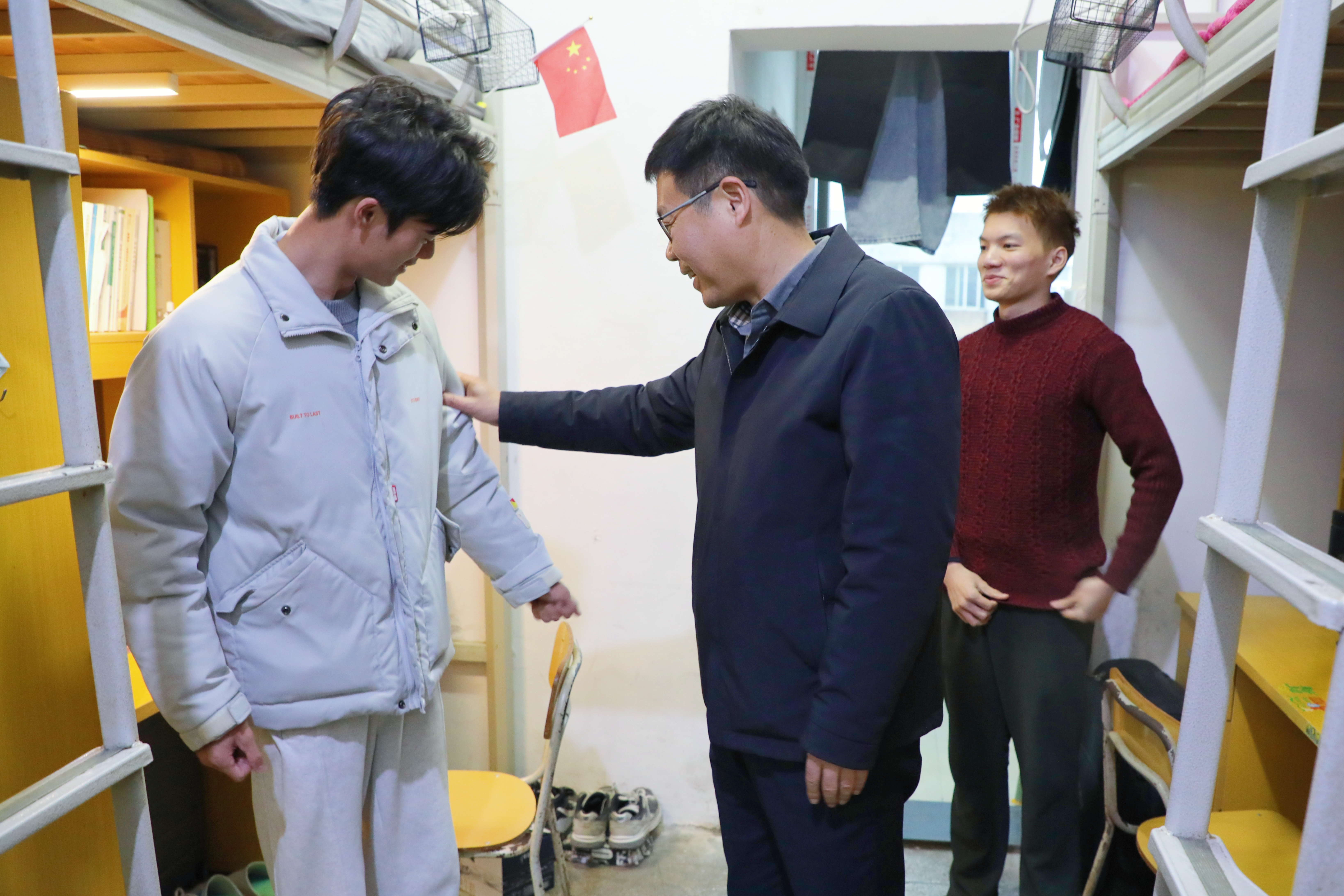 每到一处,吴小平都详细了解学生冬天保暖情况。他仔细查看学生床铺,并询问学生过冬被子是否足够厚实,室内温度是否适宜,并要求确保每位同学都能度过一个温暖舒适的冬天。在看到大家在备考四六级考试时,他饶有兴趣地与学生进行探讨,在交流过程中,他通过分享自身学习经历,用生动的例子鼓励大家要勇于挑战自己,不断提升自身综合素养,早日成长为新时代高素质技术技能人才。