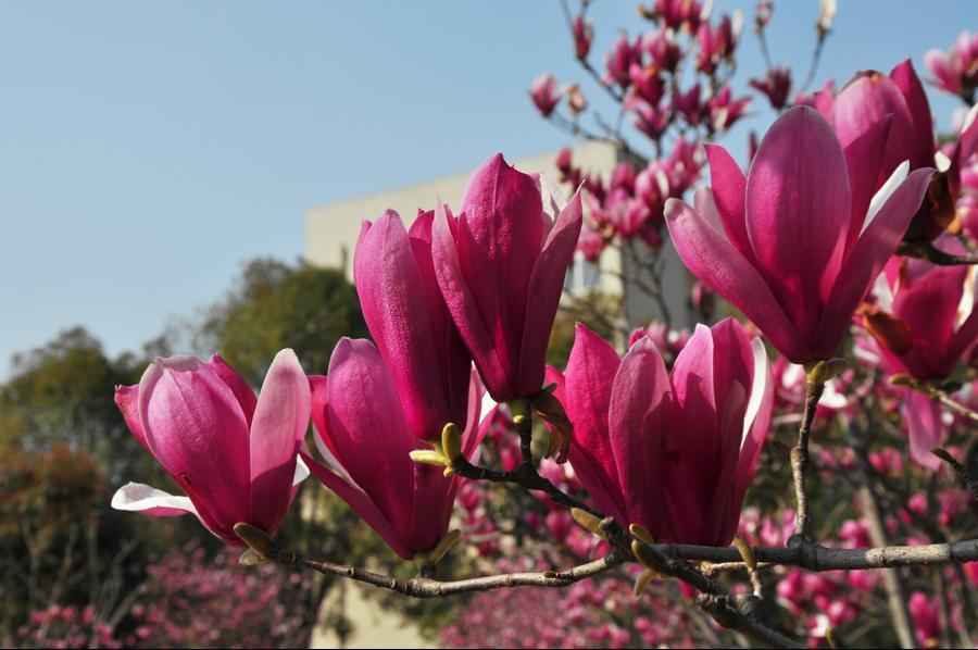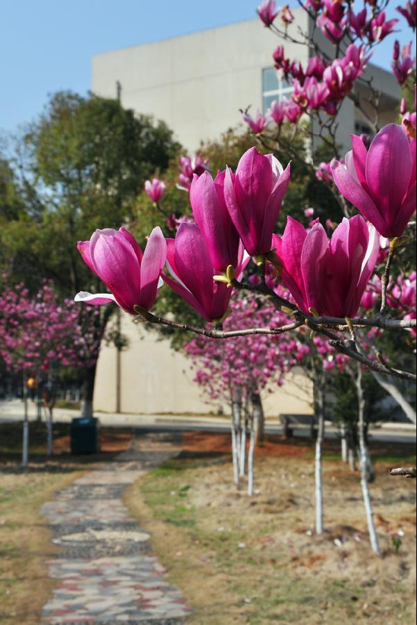 随风潜入夜,润物细无声。仿佛就是绵绵的细雨,不经意间就在破土的嫩草、探头的小花传播着春天的消息;而一场骀荡的春风,迅疾在田野、林木奏响了《春意闹》的协奏曲。今天,旅商校园晴空如洗,玉兰花、梨花、月季花,还有许多不知名的花,将旅商校园装点的的格外艳丽。老师同学们纷纷拿出手机、照相机,用微信、QQ等,传播分享着旅商校园的美丽。