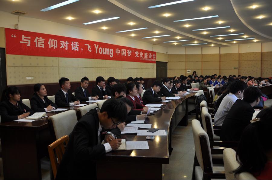 在我校行政楼一楼会议室,召开了“党史文化进校园”座谈会,我校党委书记、校长赵恒伯,党委委员、副校长范秀仁,党委委员、纪委书记刘中平,党委委员、党办主任樊盛春,工会主席张甫旺等领导出席座谈会,学校相关部门负责人、思政部全体专职教师以及学生代表近50人参加了座谈会。