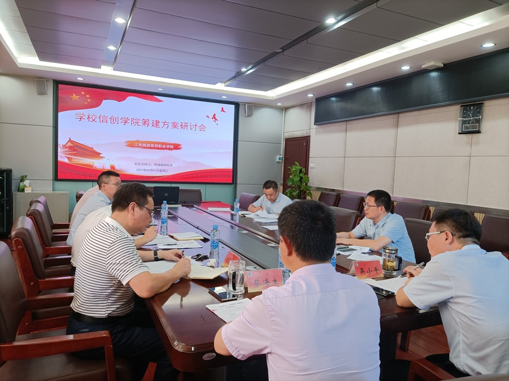 9月1日,学校在行政楼三楼会议室召开信息技术应用创新产业学院(简称信创学院)筹建方案研讨会。党委书记吴小平,党委副书记、院长蔡海生,党委委员、副院长杨福盛出席会议,教务处、产教融合处和艺术传媒与计算机学院负责人参加会议。