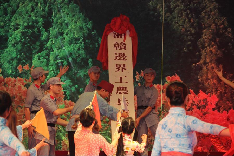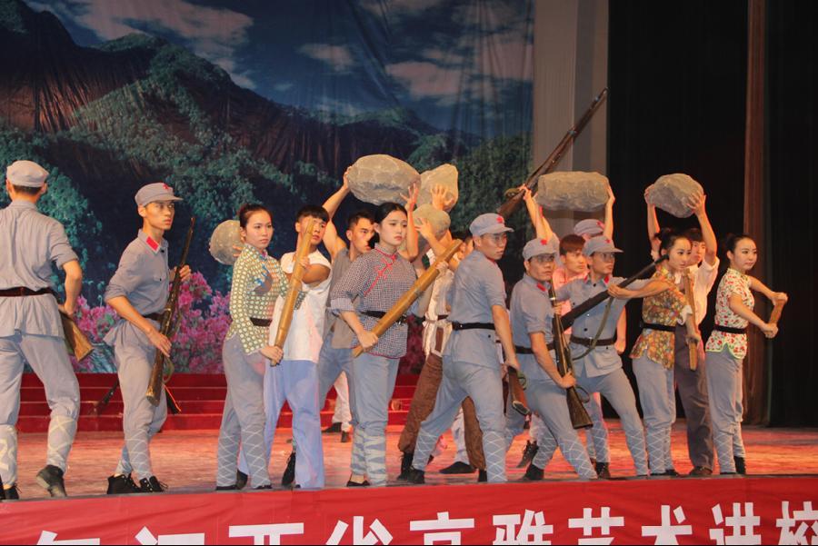 本次走进我校的音乐舞蹈史诗《井冈山》演出团,是一支和我校大学生同样年轻、同样朝气蓬勃的艺术团队,由井冈山大学百名大学生出演。节目分《序》《引兵井冈》《星火燎原》《伟大创举》和《尾声》五个部分,融汇了舞蹈、声乐、戏剧、朗诵、情景等多种艺术表现手法,全景展示了1927年10月至1930年2月,毛泽东、朱德等老一辈无产阶级革命家开创井冈山革命根据地的历史,艺术再现了井冈山斗争时期可歌可泣的英雄人物,经典演绎了广泛流传的井冈山红色歌谣,深情颂扬了伟大的井冈山精神。