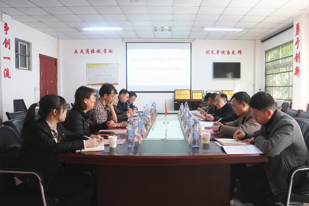 4月9日下午,江西农业工程职业学院党委委员、纪委书记钟景辉一行六人来我校交流考察。学校党委副书记方卫武,党委委员、纪委书记刘中平在国际商务学院党员活动室接待了客人一行。