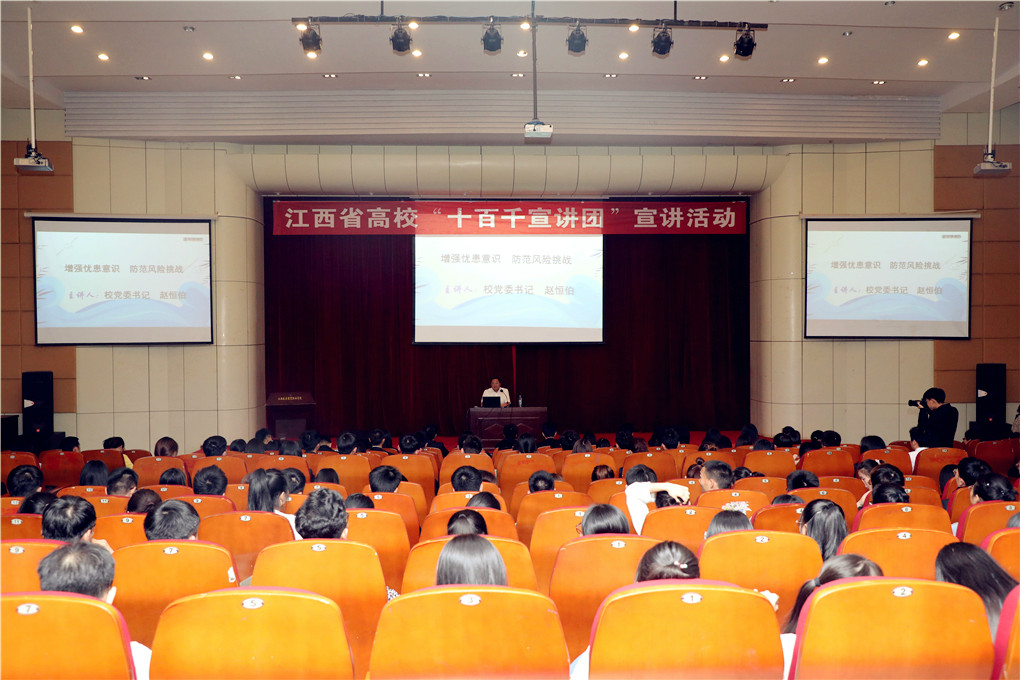 为进一步深入学习贯彻全国“两会”精神尤其是习近平总书记在全国“两会”期间的重要讲话精神,5月9日晚,学校在图书馆学术报告厅举办“十百千”宣讲活动,党委书记赵恒伯为2017和2018级本科班、第十期大学生骨干班、全体辅导员讲授主题为“增强忧患意识 防范风险挑战”的《形势与政策课》,解读全国“两会”关于增强忧患意识、防范风险挑战的重要论述。