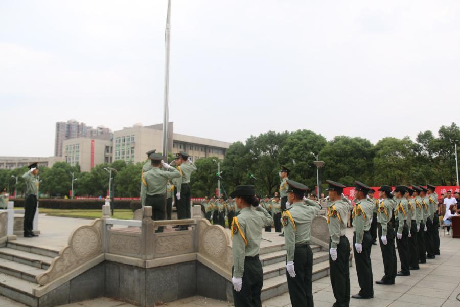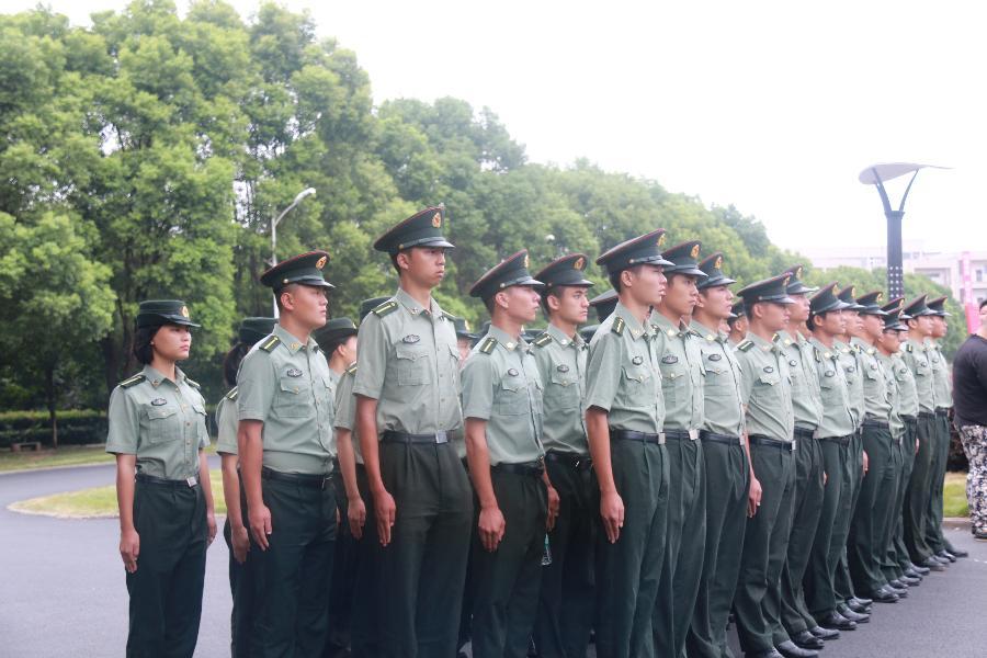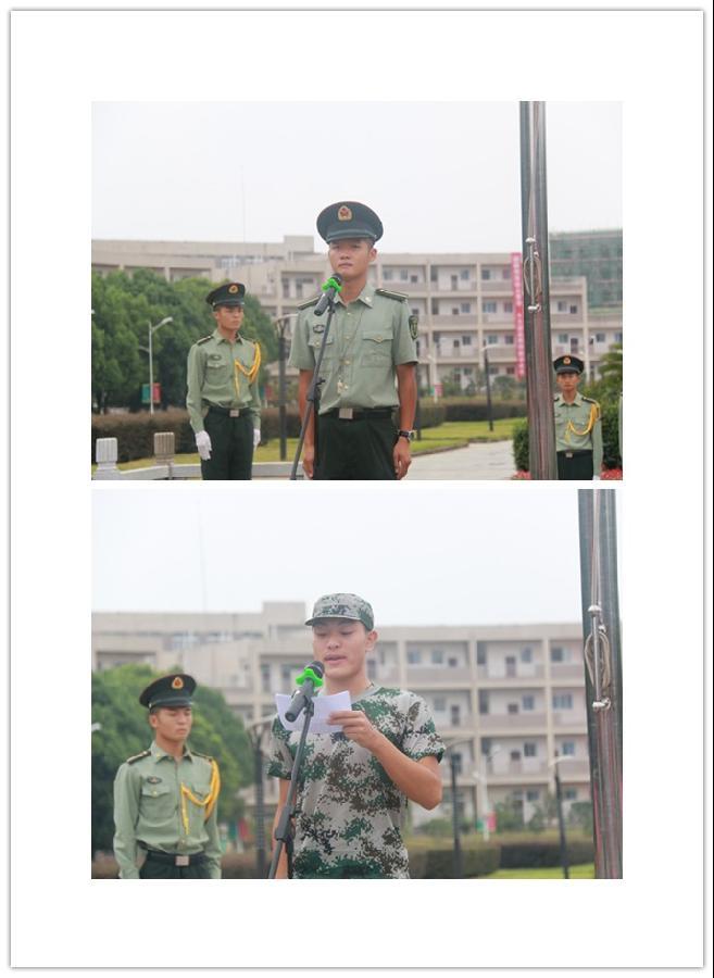 军训教官代表章勋、新生代表经管学院周星在仪式上发言,表示要严格训练,勤奋学习,以提高军事理论水平和技能,增强国防知识。