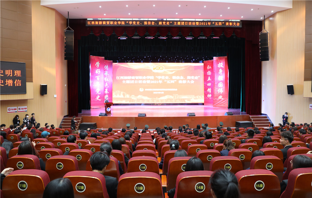 为贯彻落实习近平总书记在党史学习教育动员大会上的重要讲话精神,纪念“五四运动”102周年、中国共青团建团99周年,4月29日下午,学校在文体中心举行“学党史、强信念、跟党走”主题团日活动暨2021年“五四”表彰大会。