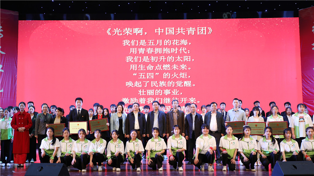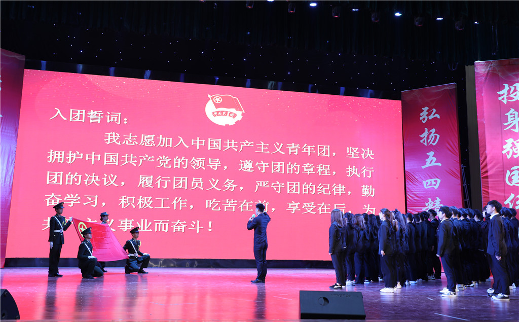 会上还进行了团员青年入团仪式,老团员重温入团誓词仪式,团员代表深情朗诵《党的赞歌》等纪念活动,大会在嘹亮的《光荣啊!中国共青团》歌声中落下帷幕。