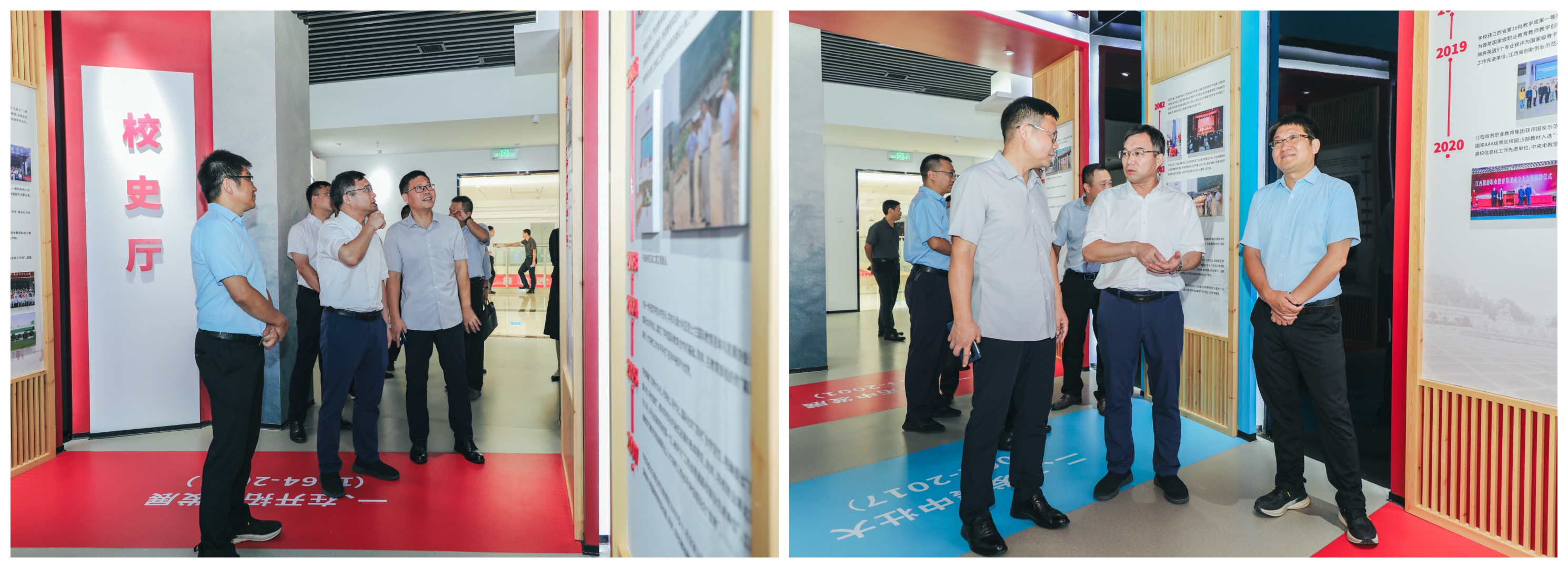考察过程中,吴小平向毛江虎一行介绍了学校的发展历程、专业特色、办学成果及产教融合等情况。期待与井冈山市在文旅人才培养、产教融合、社会服务等方面深化合作,共同助力江西文旅产业和乡村振兴事业发展。